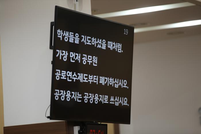 시험을 칠 때 쉬운 문제부터 풀라고 선생님은 가르치셨습니다. 어려운 문제는 뒤에 풀라고. 그렇습니다. 쉬운 문제부터 푸십시오. 학생들을 지도하셨을 때처럼. 가장 먼저 공무원 공로연수 제도부터 폐기하십시오. 공장용지는 공장용지로 쓰십시오.