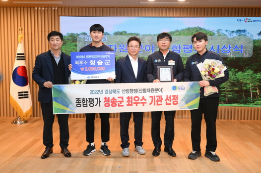 청송군은 경상북도 내 23개 시·군을 대상으로 실시한 '2022 산림행정(산림자원분야) 종합평가'에서 2021년 우수기관 선정에 이어 2022년에는 '최우수기관'으로 선정되었다.