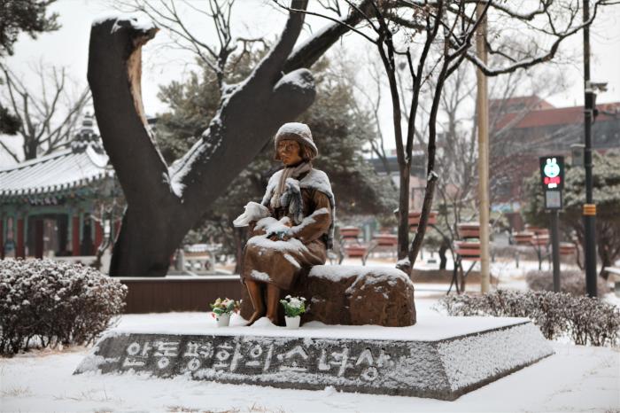 #경북온뉴스 #안동평화의소녀상 #눈 오는 날