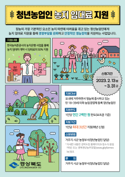 경상북도는 영농진입의 가장 기본 요소인 농지 마련에 어려움을 겪고 있는 청년농업인들에게 농지 임대료를 지원한다.