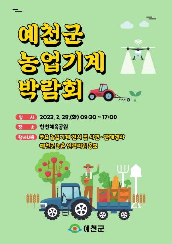 예천군(군수 김학동)은 28일 오전 9시 30분부터 오후 5시까지 예천읍 한천체육공원에서 ‘2023 예천군 농업기계 박람회’를 개최한다.