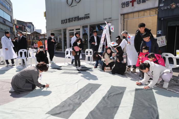 권기창 안동시장은 이날 행사에 참석해 대형 태극기에 ‘독립운동의 성지 대한민국 안동’이라는 글귀를 남겼다.