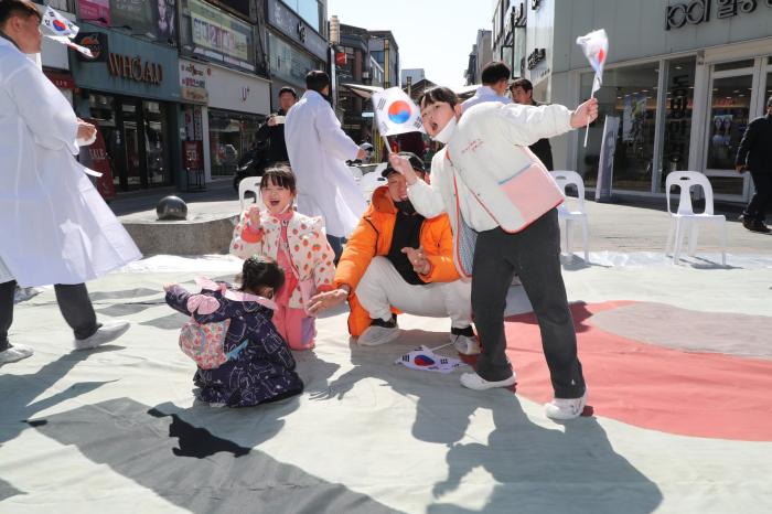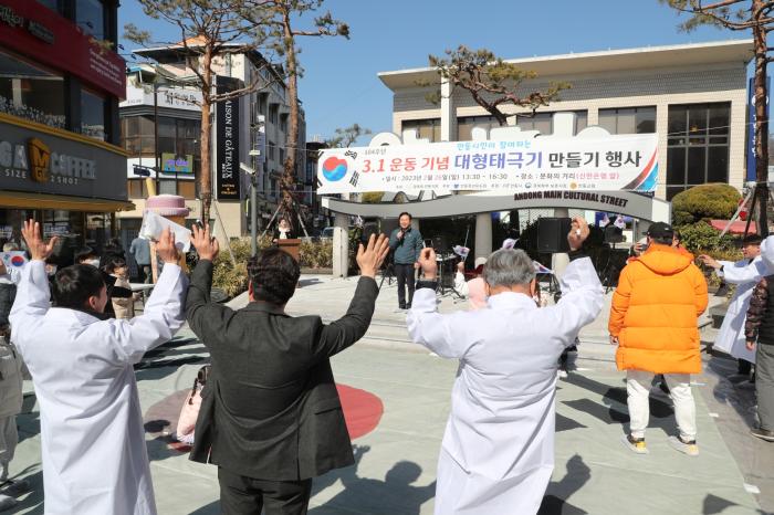 3.1절 기념 만세재현행사를 앞둔 26일 안동 문화의 거리에서 '대형 태극기 만들기' 행사가 열렸다.