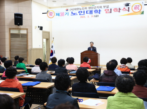 (사)대한노인회 영양군지회(회장 안재범)는 3월 31일 영양군종합복지회관 강당에서 '제38기 노인대학(학장 박성길) 입학식'을 개최했다.