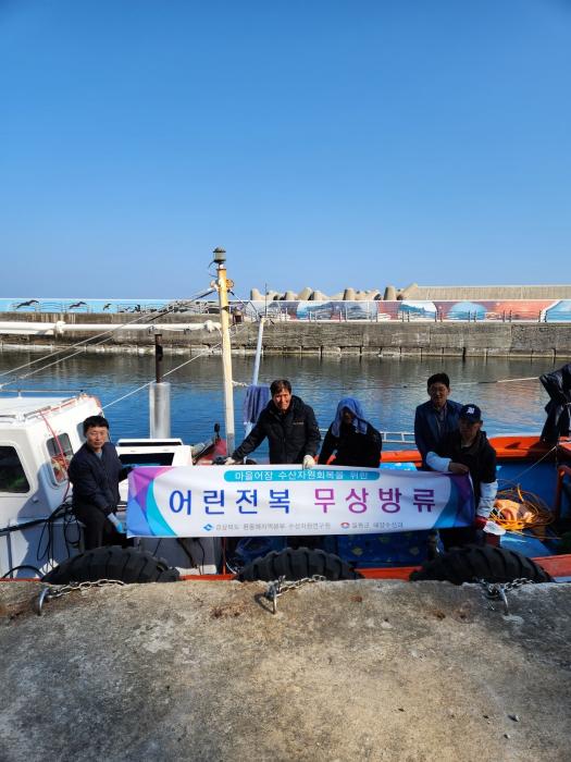이번 천부와 현포어촌계 마을어장 연안해역에 방류하는 어린 전복은 유전적 다양성이 확보된 각장 3.5cm의 건강한 종자로 전염병 검사와 사전‧사후 영향 조사를 마쳤으며, 어촌계 잠수부들이 암초가 많고 해조류가 풍부한 마을어장 내에 안전하게 안착시켜 서식지에 잘 적응할 수 있도록 최적의 여건을 조성해 방류했다.