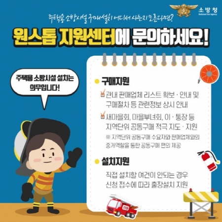 원스톱 지원센터는 주택용 소방시설 구매와 설치 방법 등 관련 사항에 대한 상담이 가능하다. 수요자가 쉽게 설치할 수 있도록 각종 편의와 정보를 안내한다.