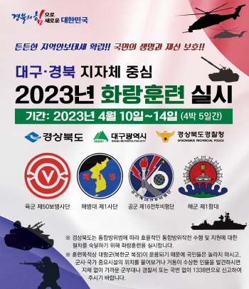 끝으로 이철우 지사는 “경북도는 코로나19가 엄중한 상황이었던 2021년에도 지역안보태세의 끈을 놓치지 않기 위해 50보병사단, 경북경찰청 등 국가방위요소들과 화랑훈련을 실시한 저력이 있는 만큼, 이번 훈련도 평시에 전쟁을 대비한다는 유비무환의 자세로 전 훈련 참가기관이 솔선수범해 훈련에 적극적으로 임해달라”고 당부했다.