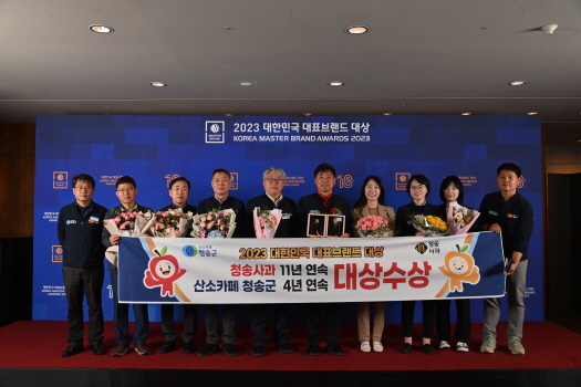 지난 4월 18일(화) 서울 신라호텔에서 열린 ‘2023 대한민국 대표브랜드 대상 시상식’에서 「청송사과」와 「산소카페 청송군」이 대한민국 대표브랜드 대상을 받았다.