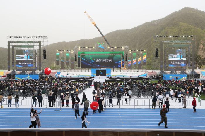권기창 안동시장이 21일 울진군 종합운동장에서 개최되는「제61회 경북도민체육대회 개회식」에 참석해 안동시 선수단을 격려했다.