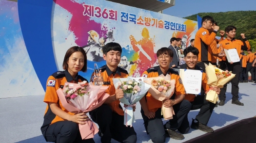 구급분야 선수단으로 나선 청송소방서 소속 소방교 이상훈, 소방사 김주한, 소방사 김단아, 소방사 추연태 등 4명이 전국 3위를 차지해 특별 승급했다