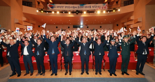 ‘위대한 헌신에 존경과 감사를’이라는 주제로 △기념공연 △6.25 영상 상영 △유공자 표창 △환영사 △기념사 △인사말씀 △제복의 영웅들 행사 △호국노래(전우야 잘자라) 합창 △6․25노래 제창 △만세삼창 순으로 행사가 진행됐다.