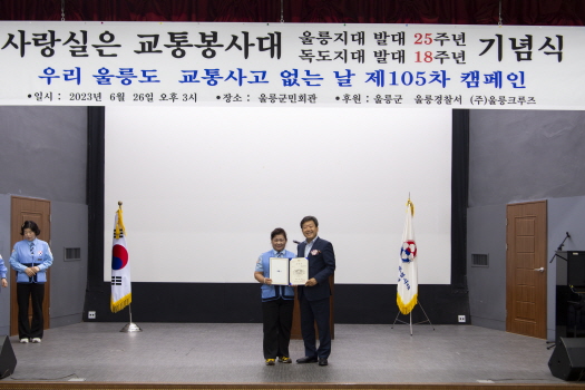 26일 기념식에는 남한권 울릉군수, 공경식 울릉군의회의장, 김동혁 울릉경찰서장, 손삼호 사랑실은 교통봉사대장 등 내외귀빈과 교통봉사대 관계자 등 350여명이 참석했다. 이날 자원봉사를 지속적으로 실천한 교통봉사대 모범대원에게 울릉군수, 울릉군의회의장, 울릉경찰서장 표창을 수여하고 이들의 노고를 격려했다.