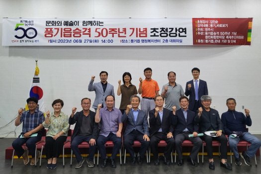 영주시 풍기읍 승격 50주년을 기념해 27일 풍기읍행정복지센터 대강당에서 ‘영주향토사 작가 김인순 초청 강연회’를 개최했다.