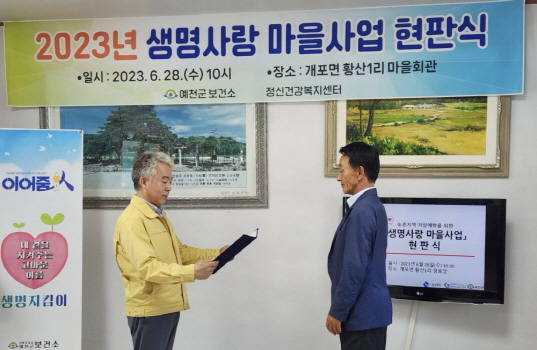 군은 개포면 황산1리를 관내 5번째 생명사랑마을로 지정해 가구별 농약안전보관함 보급 및 사용 방법 등을 안내하고 주민을 대상으로 자살예방 교육도 진행했다.
