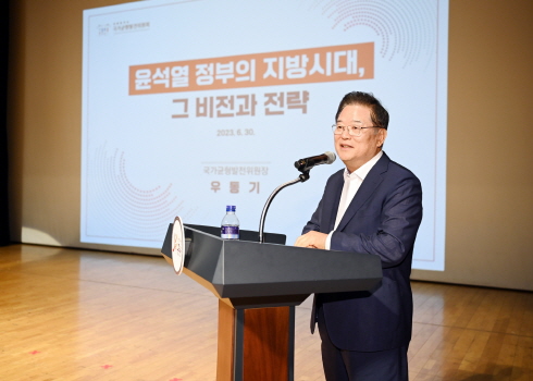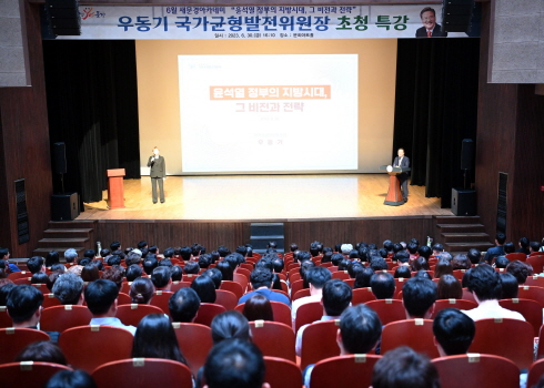 이날 우동기 위원장은 ‘윤석열 정부의 지방시대, 그 비전과 전략’이라는 주제로 특강을 펼쳤으며, 역대 균형발전 정책의 한계를 지적하고 새로운 지방시대로 나아가기 위한 핵심 전략 및 과제를 제시하였다.