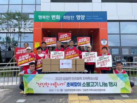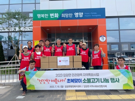 영양군 입암면지역사회보장협의체(공동위원장 신재성, 강영길)는 7월 10일 취약계층 20가구를 대상으로 건강한 여름을 보내기 위한 소불고기 나눔 행사를 실시했다.
