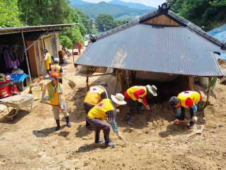 대한적십자봉사회 안동시지구협의회는 봉화군 춘양면 수해 지역을 찾아 기록적인 폭우와 산사태로 피해를 본 지역민들을 위해 지난 20일 수해 복구 봉사활동에 나섰다.