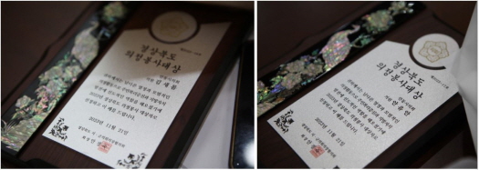 경상북도 시.군의회 의장협의회 안경숙 회장은 "남다른 열정과 모범적인 의정활동으로 주민복리증진과 지방자치발전에 선도적인 역할을 다해준 것에 의정봉사 대상자로 선정했다"면서 축하와 격려를 전했다.