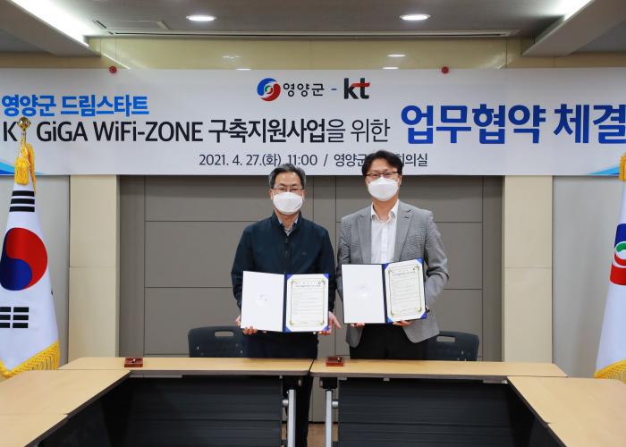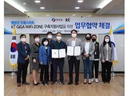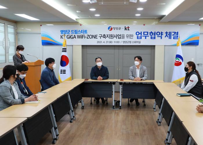 (영양군=경북온뉴스) 임성철 기자 = 영양군 주민복지과 드림스타트는 4월 27일(화) 영양군청 소회의실에서 드림스타트 대상 아동들이 가정에서 원활하게 온라인 학습에 참여할 수 있도록 KT경북북부지사와 KT GIGA WiFi-Zone 구축 지원 사업을 위한 업무협약을 체결했다.