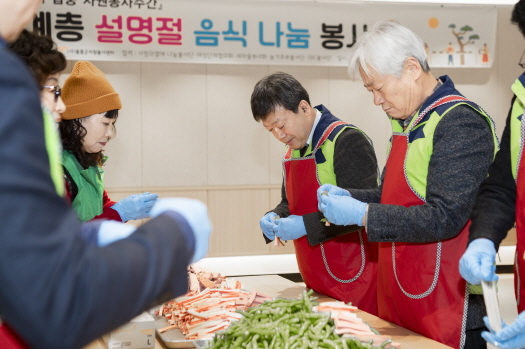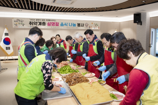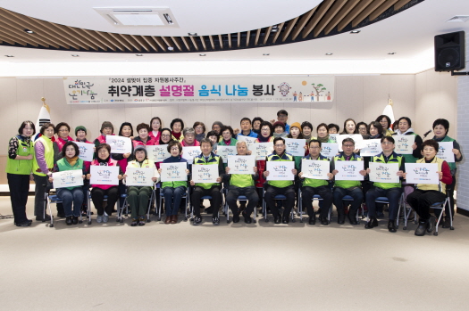 행사를 통해 자원봉사자들은 관내 취약계층 100세대를 위해 떡국 꾸러미와 전(4종), 나물(3종) 등 설 명절 음식을 만들고 가정으로 배달해 사랑의 온기를 곳곳에 나누었다.
