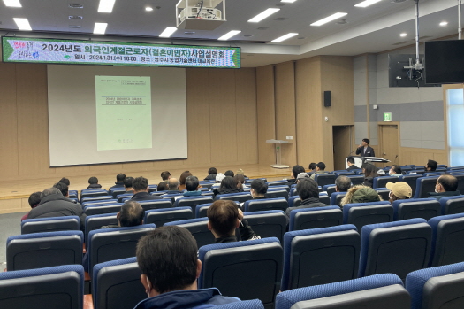 영주시는 31일 오전 10시 농업기술센터 대교육관에서 ‘2024년 결혼이민자 가족 계절근로자 사업설명회’를 개최했다.