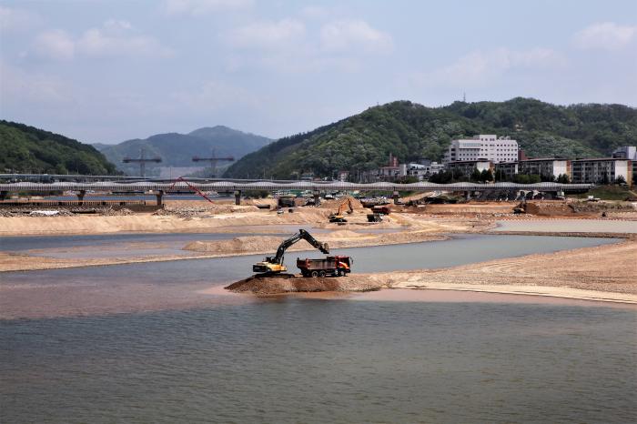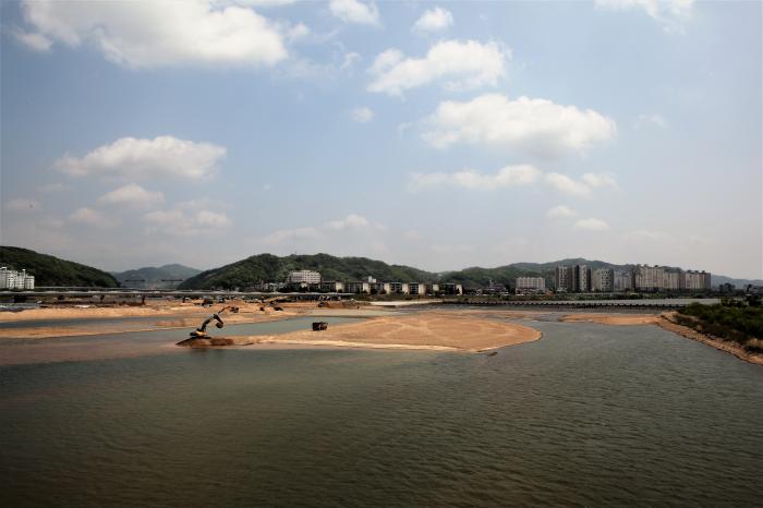 4.30.(금) 오전 낙천보와 동천보가 만나 비로소 낙동강을 이루는 시발지(안동시 용상동) 주변 강바닥 모래를 퍼나르는 모습을 지켜보며 도심을 가로지르는 천혜의 자원인 강을 시민들이 편하게 마음껏 사용하게 지혜를 모으지 않고 그저 바라만 보도록 만들어 가는 안동시의 촌스런 도시개발 정책이 과연 미래세대들에게도 걸작으로, 명품으로 인정 받게 될런지 묻고 있는 것입니다.