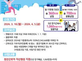 선정된 청년이 2년간 월 15만원씩(총360만원) 저축하면 경북도와 시군에서 공동으로 1년간 분기별 175만원씩(총700만원) 추가 적립해 만기 시 1,060만원을 수령받는다.