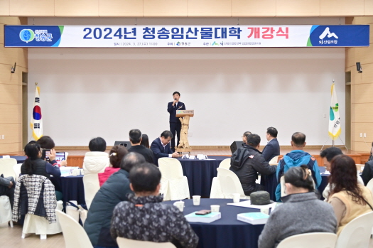 청송군은 3월 27일(수) 산림조합중앙회 임업인종합연수원에서 초청내빈 및 입학생 등 80여명이 참석한 가운데 청송임산물대학 개강식을 갖고 학사일정에 들어갔다.