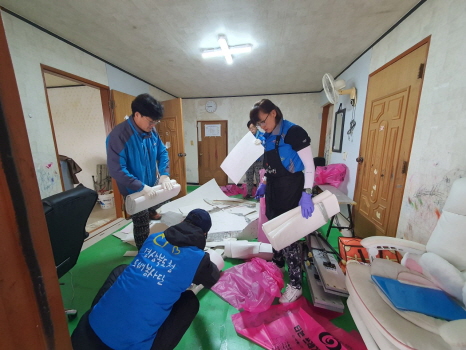경북도청 공무원 봉사동아리 행복을 바르는 사람들이 지난 6일 드림스타트 대상 아동 가정(감천면)에 도배와 장판 교체 등의 봉사활동을 펼쳤다.