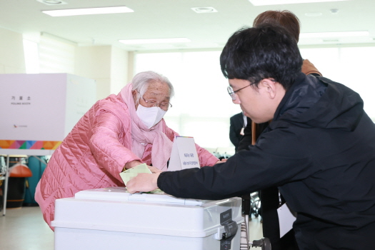 10일 오전 11시쯤 호명읍 담암리에 사는 105세 임차녀 할머니가 호명읍 제1투표소(늘품복지센터)를 방문해 자녀와 함께 투표를 마쳐 언론의 조명을 받았다.