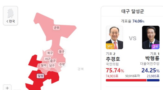 [2024 선택] 추경호 후보(국민의힘 대구 달성군) '당선'