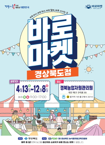 경상북도는 농산물 직거래를 활성화로 생산자와 도시소비자 모두에게 도움 되는 ‘바로마켓 경상북도점’을 13일부터 12월 8일까지 매주 토‧일요일 주 2회 대구 북구에 있는 경상북도농업자원관리원에서 운영한다.
