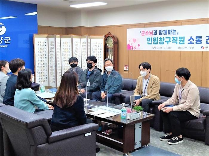 (영양군=경북온뉴스) 임성철 기자 = 영양군 오도창 군수는 4일 군민사랑방에서 종합민원실 창구직원들과 '소통 간담회'를 가졌다.