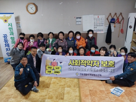 먼저, 노인학대 관련하여, 주변 어르신 중 신체적・정신적 고통을 겪고 있는 분이 계시다면 직접 112를 통해 신고할 수 있음을 안내하고, 경찰서에 직접 전화를 하는 것이 심적으로 부담 된다면, 각 경로당을 담당하고 있는 어르신지킴이(경로복지사)를 통해 해당 내용을 상담한 후 경찰서로 연계하는 등 다양한 방법으로 노인학대와 그에 따른 추가 피해를 예방할 수 있다고 홍보했다.
