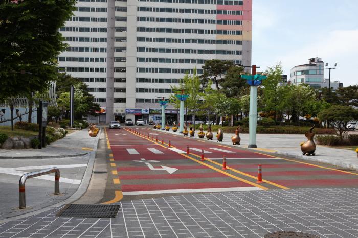 사진에서 보는 웅부공원 옆 도로 중앙 분리대는 도로 활용면에서도 흉물이 아닐 수 없다는 지적이 있다. 어쩌다 한쪽 도로가 막히면 뒷차는 어떻게 하라는 것일까?