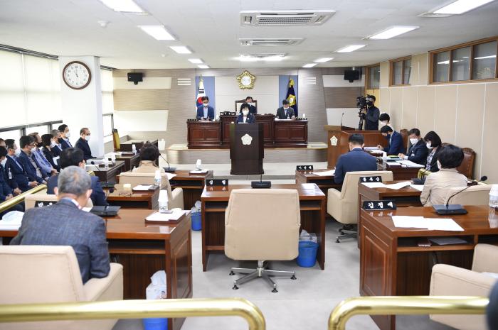 이 중 2021년도 제1회 추가경정예산안은 353억 8천 5백만원 증액된 3,728억 4천 5백만원으로 원안가결 됐다. 예산결산특별위원회 김정애 위원장은 심사결과 보고를 통해 “사업의 필요성과 긴급성, 사업의 규모, 계속성 등을 면밀히 검토한 결과 당면 현안사업과 주민숙원 사업, 특히 코로나19 피해극복을 위한 지원사업에 적정하게 편성되었다”고 밝혔다.
