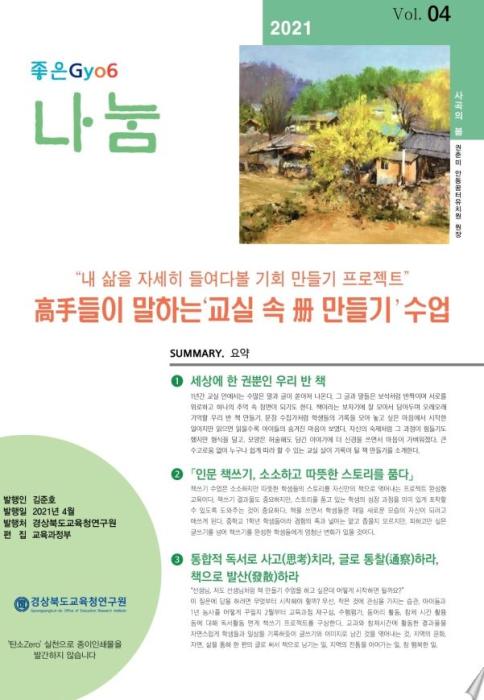 2021년 1월에 창간한 「좋은 Gyo6 나눔」은 지금까지 4호가 발간되었으며 경상북도교육청연구원 홈페이지에 전자간행물 형태로 탑재하고 있다. 누구나 편하게 접근하여 읽을 수 있도록 가독성이 높은 편집과 현장교사들의 우수 교육과정 실천사례 및 연구로 구독자 수가 꾸준히 증가하고 있으며, 5월초 기준 누적 구독자 수 6만명에 달하고 있다.