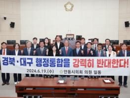 안동시의회는 △이철우 경북도지사에게 도민의 동의 없는 통합추진을 중단 △경북도의회에 경북의 정체성과 도민의 자존심을 지키도록 의결권 행사 △국회에는 균형발전과 지방자치 가치를 존중하는 차원에서 경북·대구 통합 반대에 앞장서 줄 것을 촉구했다.