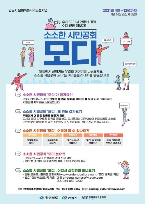 <소소한 시민공회 ‘모디’>에 대한 자세한 내용은 안동문화도시플랫폼 홈페이지(www.andongculture.com)에서 확인가능하며,