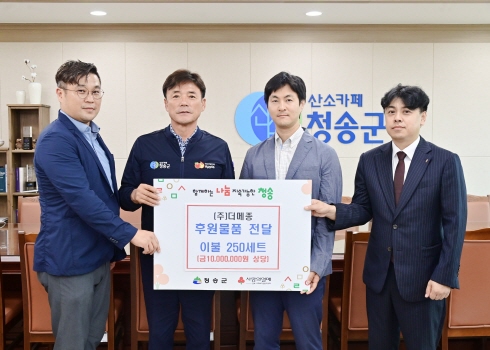 (주)더메종(침구도매회사 대표 이준엽)이 7월 11일 청송군 주민들을 위해서 이불 250세트(1,000만 원 상당)를 청송군에 전달했다.