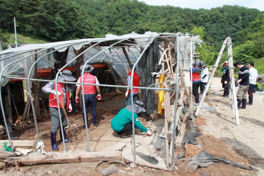 김경도 의장을 비롯한 시의원, 의회사무국 직원 등 40여 명은 711일 안동시 와룡면 주계리에 위치한 피해농가를 찾아 파손된 비닐하우스 골조 철거, 폐기물 및 토사 처리 등 피해 복구 작업 힘을 보탰다.