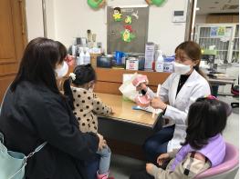 또한, 칫솔질을 실시한 후 치면 착색제를 활용하여 평소 칫솔질이 되지 않은 부위를 확인하고, 올바른 칫솔질 방법 및 치간 칫솔 사용법 등에 대한 교육도 병행하며 참여한 가족에게는 구강용품 및 가족칫솔세트도 제공한다.