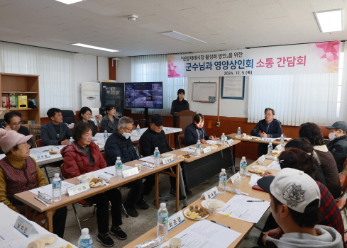 이번 간담회는 군과 시장상인회가 장기화되는 경기침체로 어려움을 겪고 있는 전통시장 현황에 대해 소통하고 함께 위기극복 방안을 모색하고자 마련됐다.