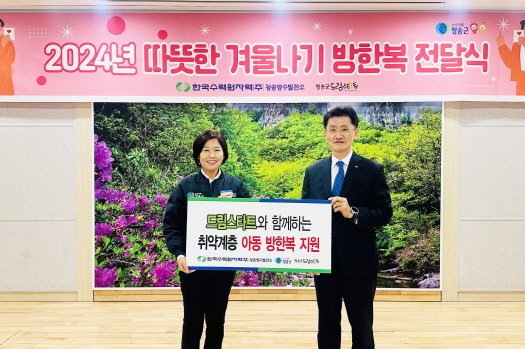 한편, 이번에 청송양수발전소에서 지원한 방한복 13벌은 청송군 드림스타트에서 지원한 8벌과 함께 지역 내 드림스타트 대상 아동 21명에게 전달될 예정이다.