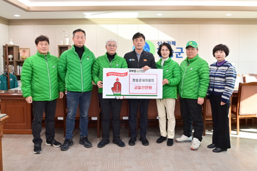 한편 윤경희 청송군수는 “청송군새마을회의 따뜻한 마음에 진심으로 감사드리며 성금은 지역의 도움이 필요한 곳에 잘 전달되도록 하겠다.”라고 말했다.