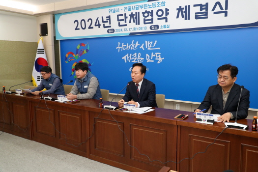 권기창 안동시장은 “이번 협약 체결로 노사가 상호존중하고 협력하는 성숙한 노사관계가 정착되고 직원들이 성실히 직무에 전념할 수 있는 환경이 만들어지는 계기가 되길 바라며, 나아가 안동시의 발전을 위해 시와 노동조합이 공명정대(公明正大)하게 함께 노력하길 바란다”고 전했다.