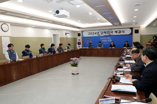 안동시와 안동시공무원노동조합은 12월 17일(화) 권기창 안동시장, 유철환 안동시공무원노동조합 위원장 등 노사 양측 교섭위원 18명이 참석한 가운데 ‘노사 단체협약’을 체결했다.
