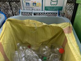※ 투명페트병 배출 방법 : 내용물 비우고 라벨 제거하고 부피 줄이고 뚜껑 닫아, 재활용품 분리 수거대의 투명페트병 마대에 배출(분리 수거대 없는 곳은 봉투에 담아 따로 배출)