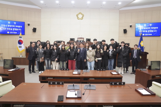안동시 지역대학생 행정인턴 20명이 18일 안동시의회 견학을 가졌다.