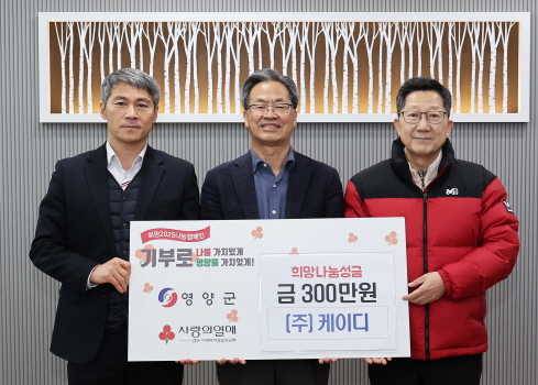 주식회사 케이디(대표 정태화)는 15일 영양군에 성금 300만 원을 기탁하며 ‘희망 2025 나눔 캠페인’에 동참했다.